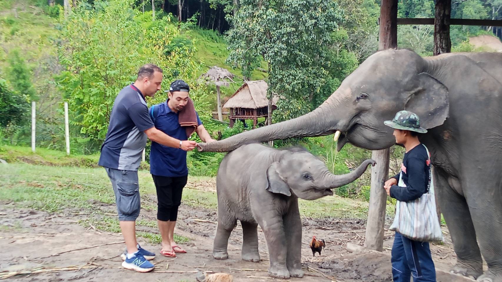 –  Take time drive 1.30 hrs to northern of Chingmai city to the elephant family.